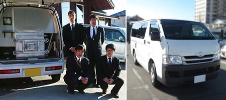 葬儀専属スタッフが専門の移動火葬車両にてご自宅にご訪問いたします。