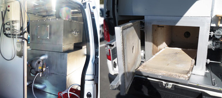 当社の火葬車は大型のペット(35kgまで)にも対応可能な火葬炉を積載しています。