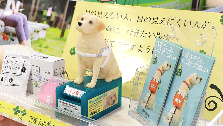 ジョイフル本田では「一般社団法人 盲導犬総合支援センター」、「公益財団法人 日本盲導犬協会」とともに、チャリティーグッズの販売、募金箱の設置を通して、盲導犬の育成はじめ視覚障がい者の方の社会参加および生活の質向上を支援する活動を始めました。目の不自由な方、盲導犬にとってよりよい社会をつくる一助となるよう今後も当社は活動支援を行ってまいります。