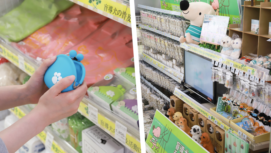 チャリティーグッズ販売などのビジネス活動を通じて、目や体に障がいのある方への支援、そして、そのパートナーである補助犬の育成を支援する団体です。