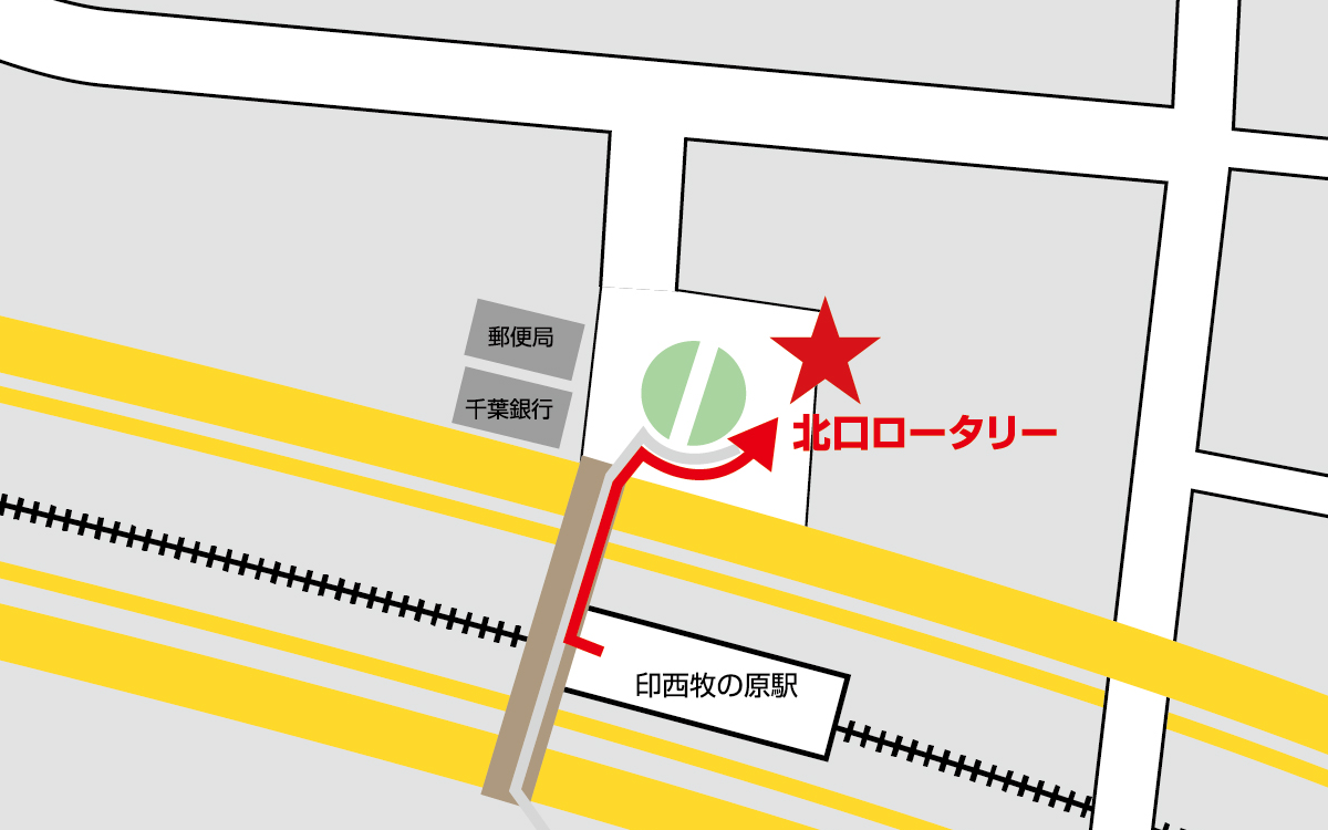 【印西牧の原駅】改札を出て右へ北口ロータリー