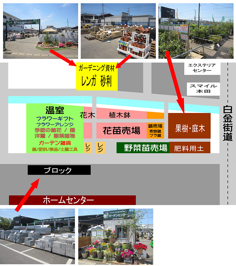 ブロック売場は、ホームセンターとガーデンセンターの間の駐車場に移動。お車を側につけての積み込みがしやすくなりました。