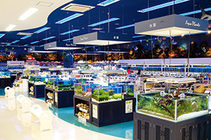金魚には力を入れており、産地にもこだわり多品種をご用意。熱帯魚や淡水魚などの観賞魚をはじめ、水草、カメなども取りそろえております。